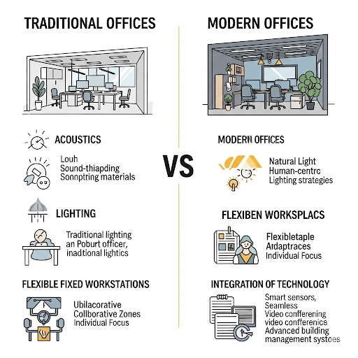 - Acústica Avanzada para la Productividad en Oficinas: Integramos soluciones acústicas innovadoras como paneles fonoabsorbentes de diseño, cielos modulares acústicos y sistemas de particiones móviles. Esto crea entornos de trabajo que favorecen la concentración y la colaboración sin interrupciones, ideal para proyectos de habilitación de oficinas.